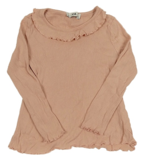 Růžové žebrované triko s volánkem C&A