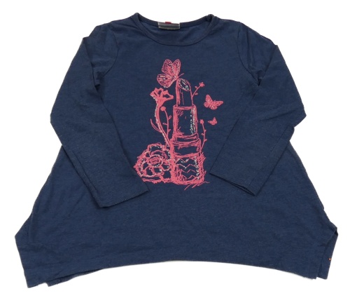 Tmavomodrá melírovaná asymetrická tunika s rtěnkou a motýly Topolino