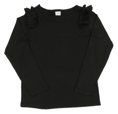 Černé žebrované triko s volánky