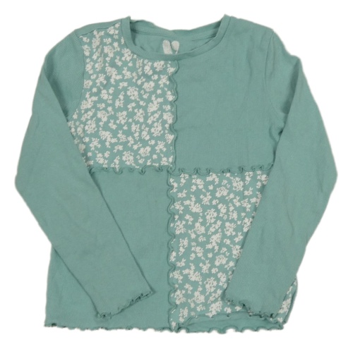 Mentolové žebrované triko s kytičkami V BY VERY