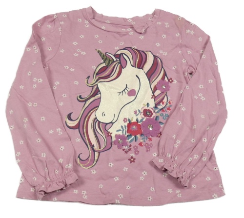 Růžové květované triko s jednorožcem C&A