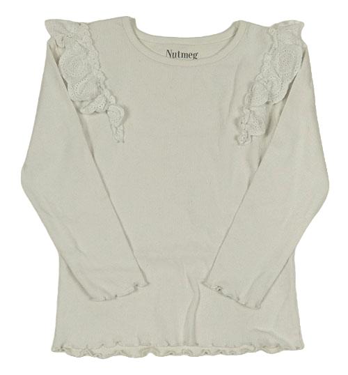 Bílé žebrované triko s volánky s madeirou Nutmeg