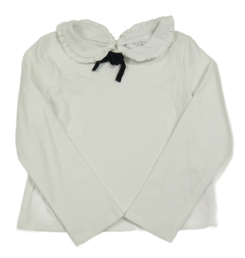 Bílé žebrované triko s mašlí a límcem Primark
