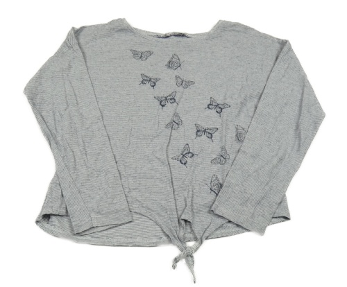 Bílo-tmavomodré pruhované triko s motýlky Topolino
