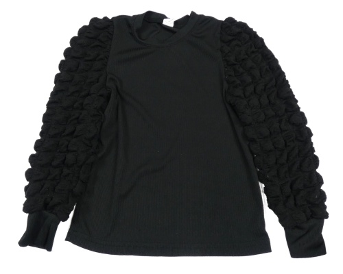 Černé žebrované triko s nařasenými rukávy Shein