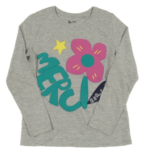 Šedé melírované triko s květem a nápisem Tu