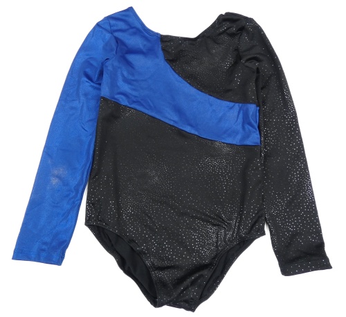 Černo-tmavomodré sportovní gymnastické body se třpytkami