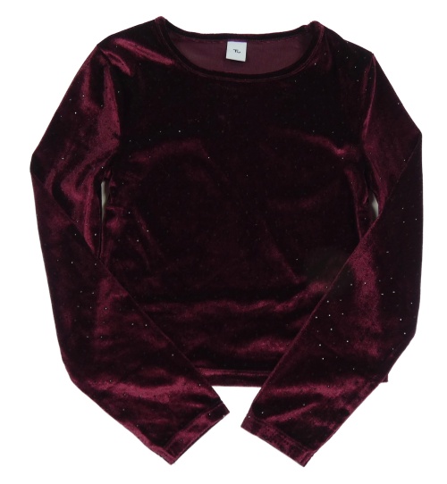 Vínové sametové crop triko s puntíky Tu