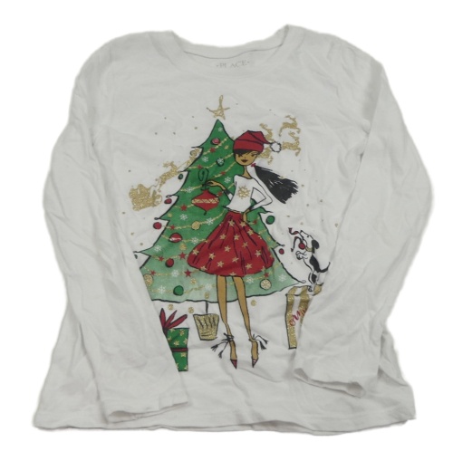 Bílé triko s dívkou a vánočním stromkem Place