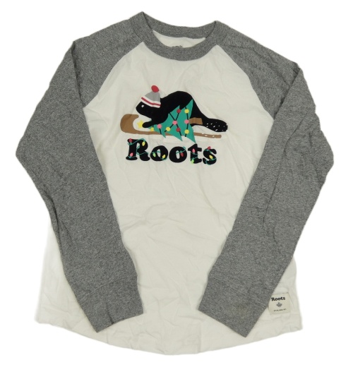 Bílo-šedé melírované triko s vánočním stromečkem a logem roots