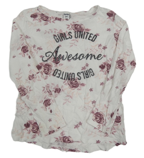 Bílé triko s květy a nápisem Dopodopo