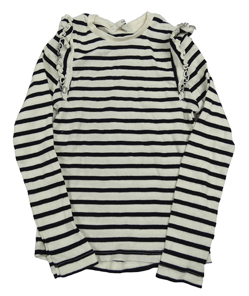 Smetanovo-černé pruhované žebrované triko s volánky George