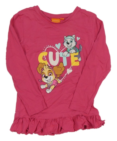 Tmavorůžové triko s PAW PATROL a kamínky a volánkem nickelodeon