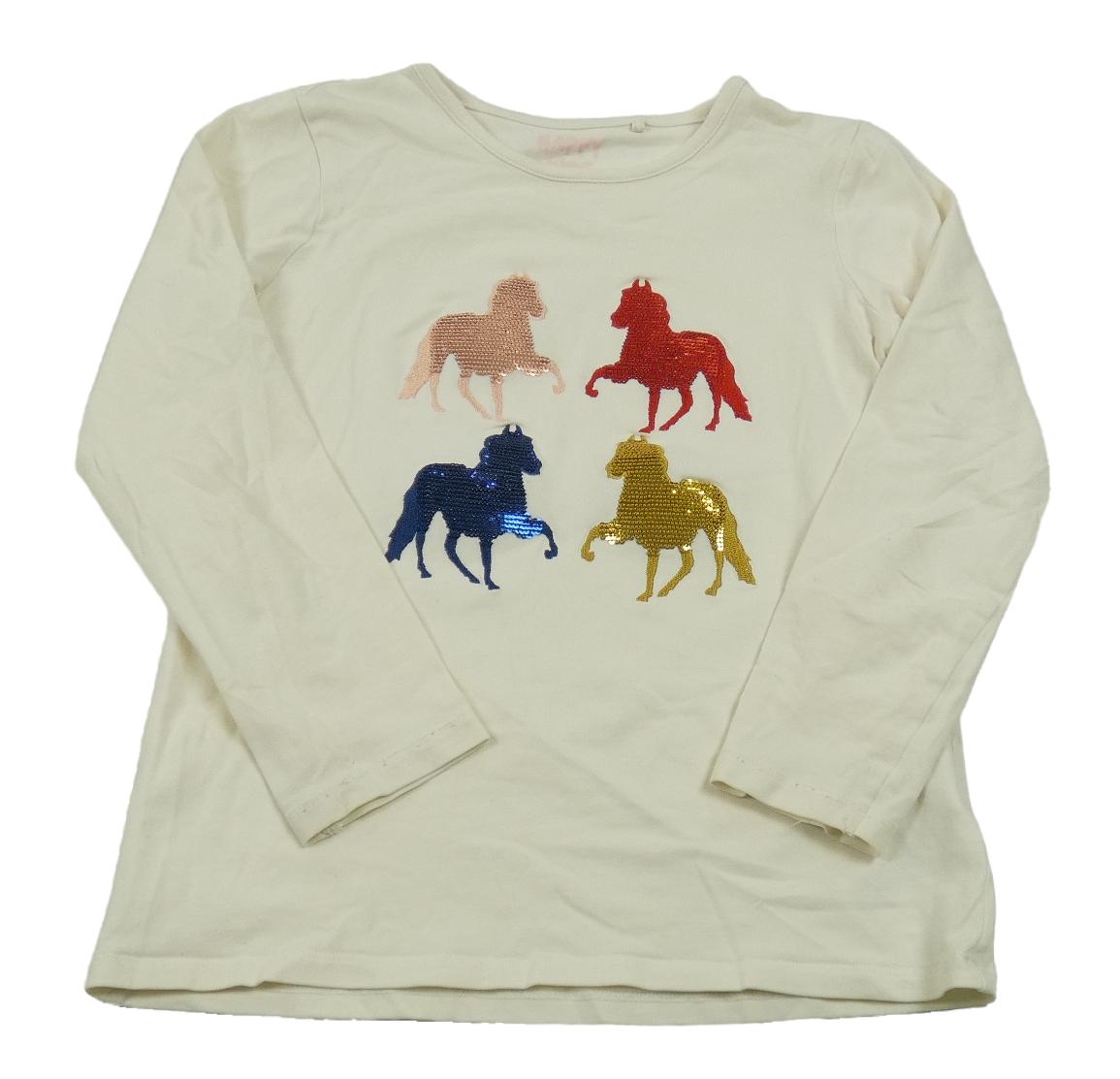 Smetanové triko s barevnými koníky z flitrů Tchibo