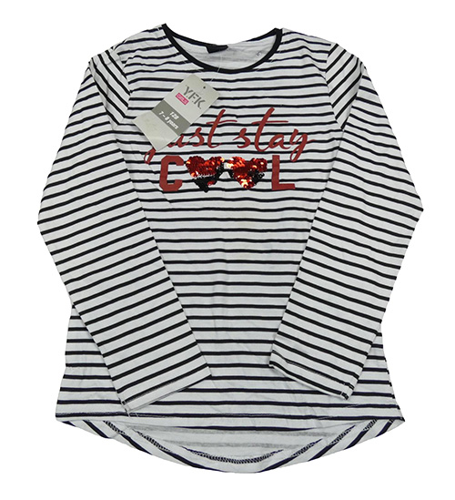 Nové - Bílo-černé pruhované triko s nápisem a srdcem z překlápěcích flitrů Y.F.K.
