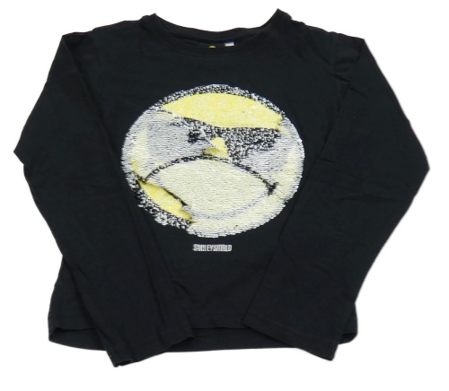 Černé crop triko s překlápěcími flitry se smajlíkem