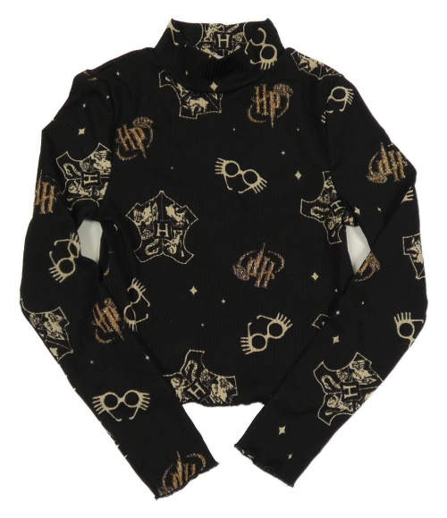 Černý žebrovaný crop rolák s brýlemi a logy - Harry Potter