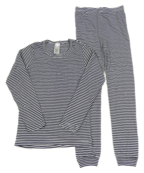 2Set - Tmavomodro-bílé pruhované spodní triko + kalhoty