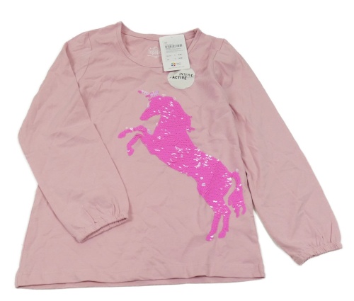 Nové - Světlerůžové triko s jednorožcem z flitrů Topolino