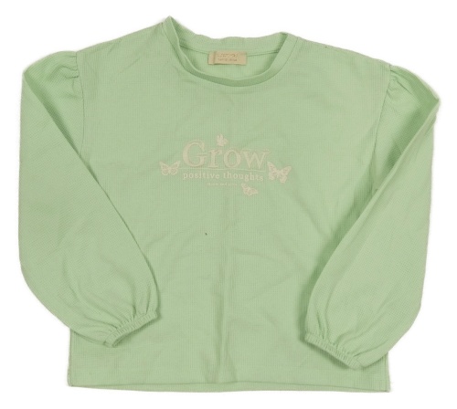 Zelenkavé žebrované triko s nápisem a motýly LC Waikiki