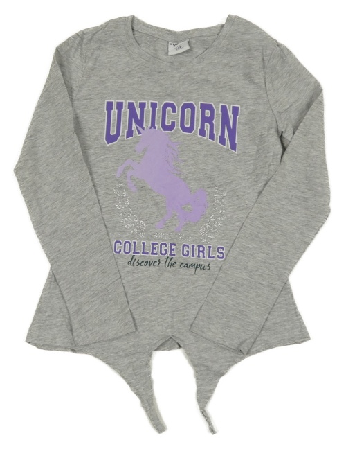 Šedé melírované triko s jednorožcem a nápisem Y.F.K.