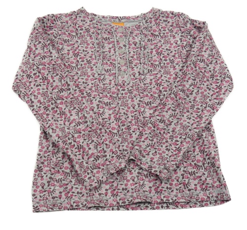 Šedé melírované crop triko s kytičkami a větvičkami a kanýrky PUSBLU