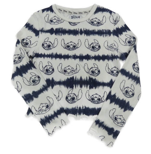 Bílo-tmavomodré batikované žebrované crop triko se Stitchem Primark