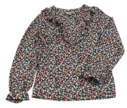 Černo-modro-červené květované triko s volánkem F&F