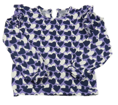 Fialovo-bílé triko se srdíčky a volánky WE