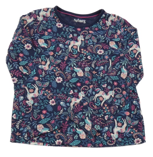 Tmavomodré květované triko s jednorožci Nutmeg
