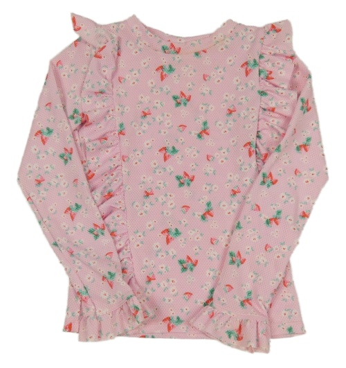 Růžové vzorované triko s jahůdkami a voláínky St. Bernard