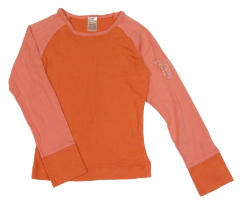 Korálové triko s motýlem na rukávu