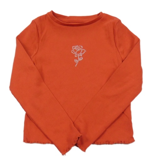 Červené žebrované triko s růží z kamínků George