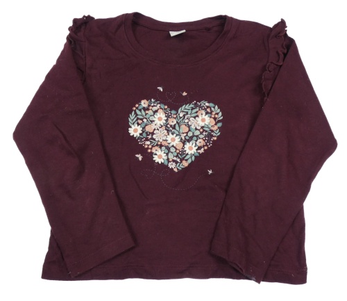 Vínové triko se srdcem z květin a volánky