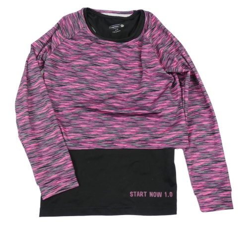 Růžovo-šedo-černé sportovní triko se všitým černým tílkem