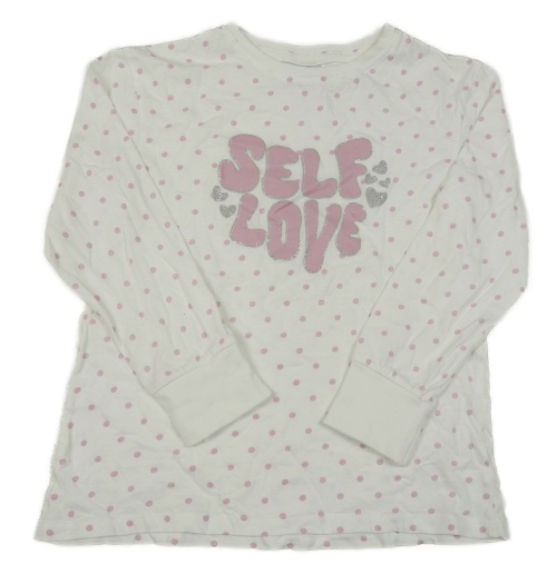 Bílé puntíkaté triko s nápisem a srdíčky Y.F.K.