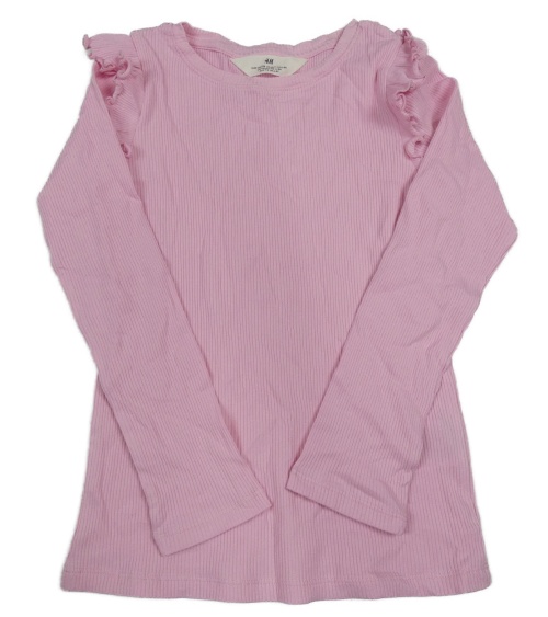 Růžové žebrované triko s volánky H&M