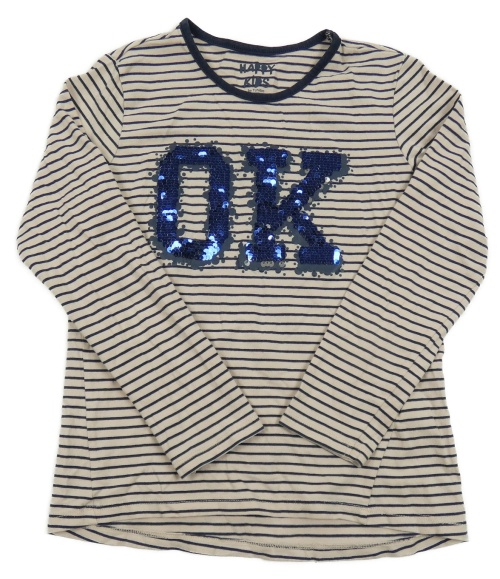 Béžovo-tmavomodré pruhované triko s nápisem z flitrů Tchibo