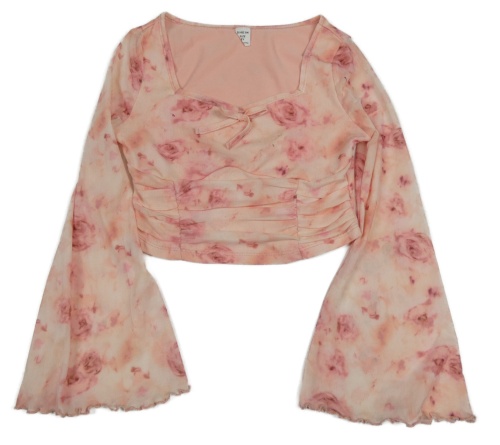 Světlerůžové květované šifonové crop triko Shein