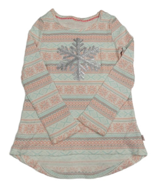 Smetanovo-růžovo-pomněnkové vzorované triko s vločkami