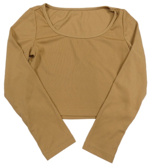 Okrové žebrované crop triko Shein