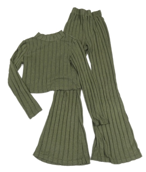 2set - Khaki úpletové žebrované crop triko + flare kalhoty Shein