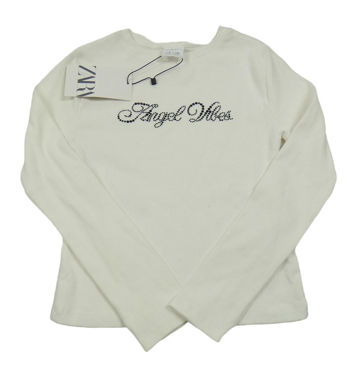 Nové - bílé žebrované triko s nápisem z kamínků Zara