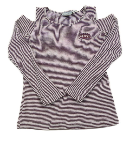 Vínovo-bílé proužkované žebrované triko s průstřihy Pepperts