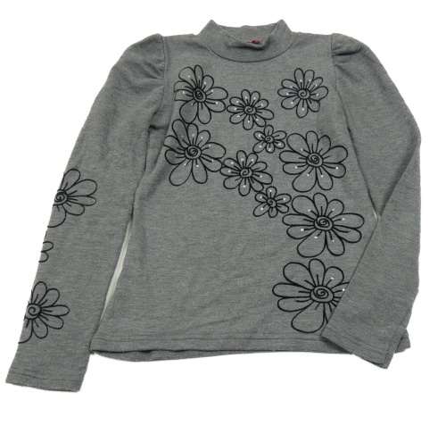 Šedé melírované triko s květinami s kamínky a stojáčkem