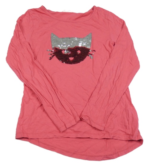 Růžové triko s kočkou z překlápěcích flitrů