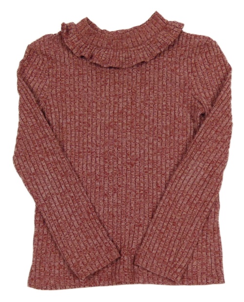Vínové žebrované úpletové triko s volánkem