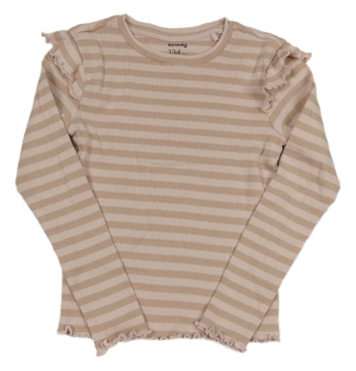 Světlerůžovo-béžové pruhované žebrované triko s volánky Sinsay