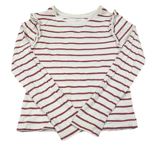 Bílo-vínové pruhované triko s volánky John Lewis