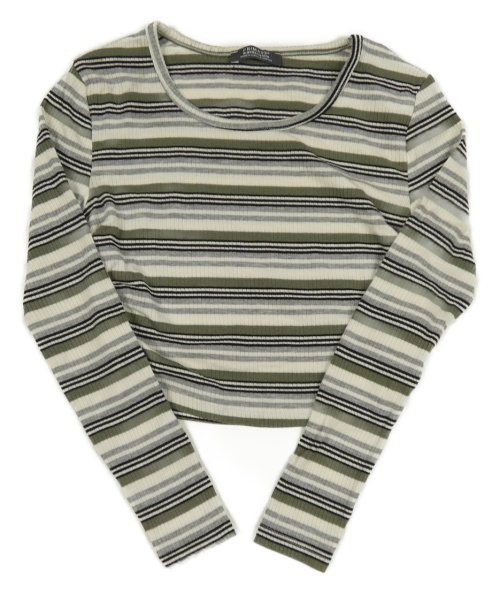 Šedo-smetanovo-khaki pruhované žebrované crop triko Primark